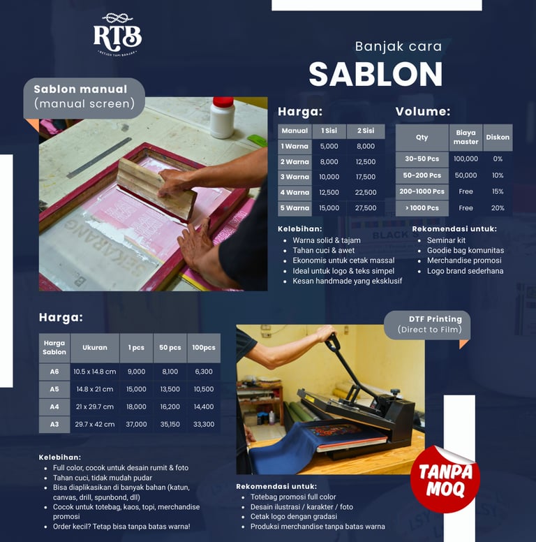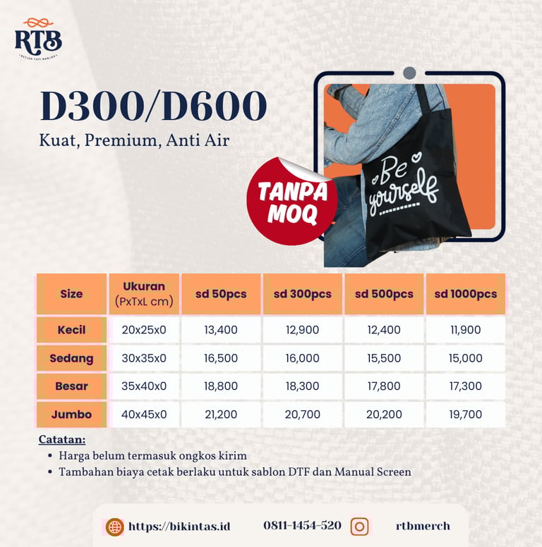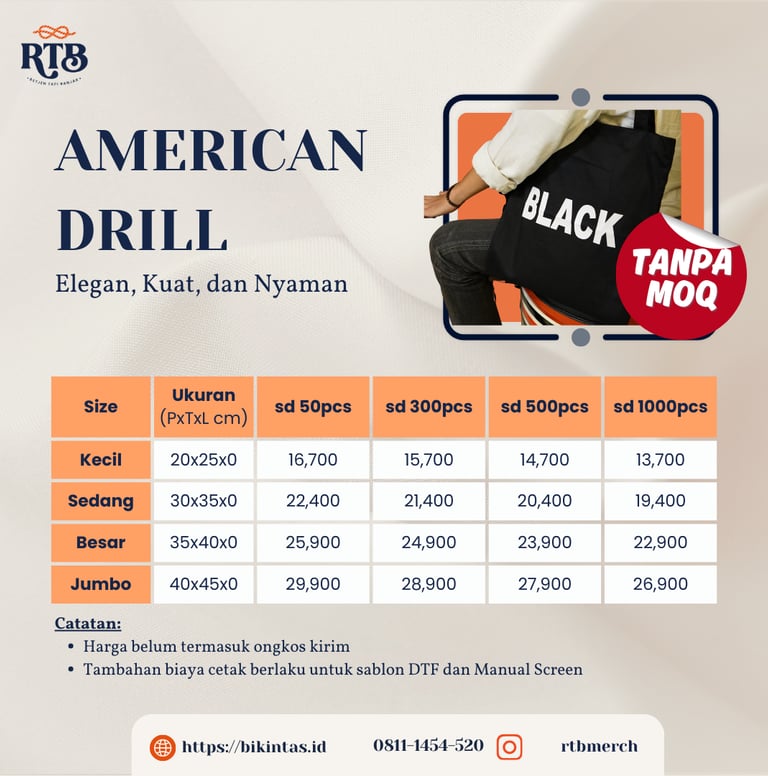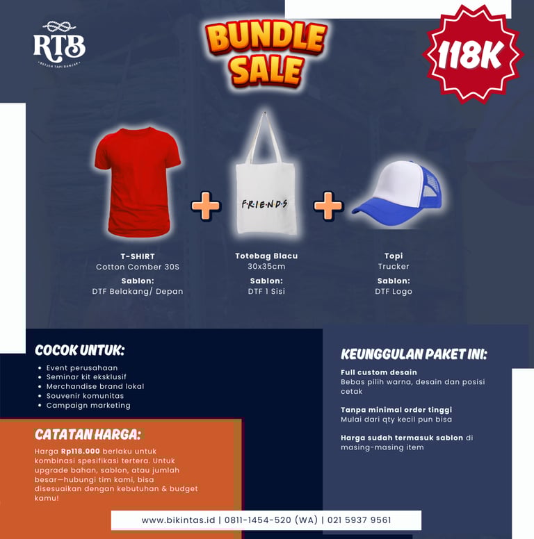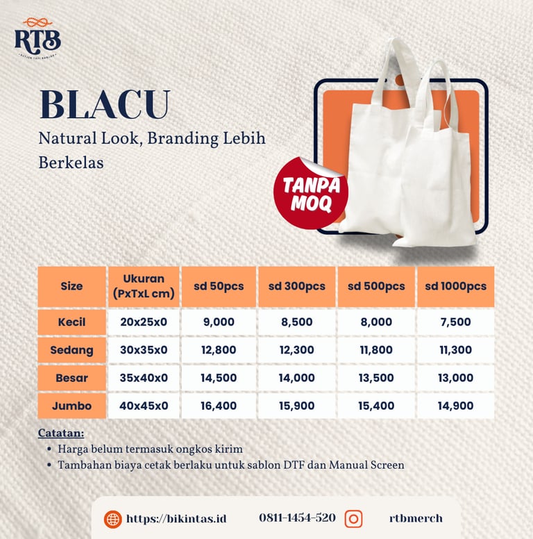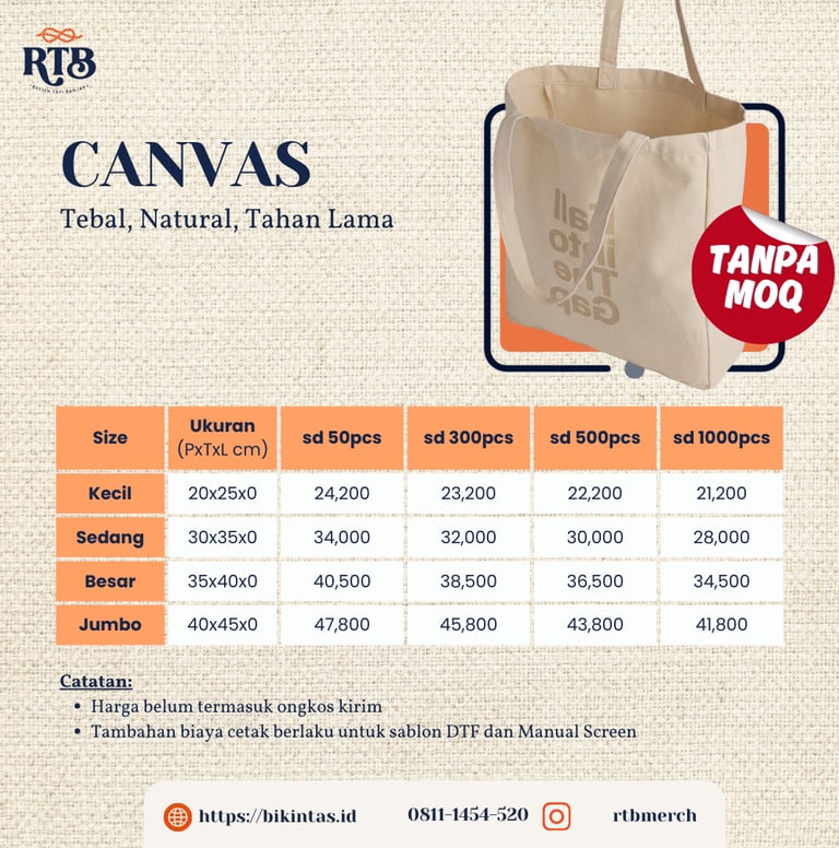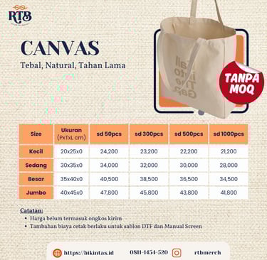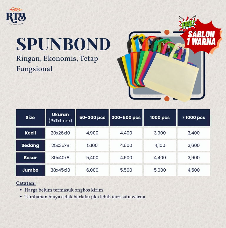 RTB adalah pabrik Totebag di Tangerang yang mampu menyediakan kebutuhan Totebag perusahaan kamu yang disesuaikan dengan budget dan kebutuhan.